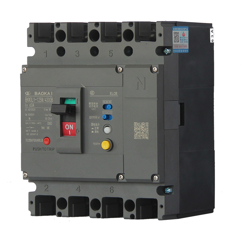 BKM3L系列带剩余电流保护塑料外壳式断路器适用于交流50Hz,额定绝缘电压1000V,额定工作电压至400V,额定电流至800A的配电网络中,用来分配电能和保护线路免受过载、短路、欠电压等故障的损坏。额定电流630A及以下的断路器亦可作为电动机不频繁起动用。同时还可以用来防止因设备绝缘损坏产生接地故障电流而引起的火灾风险。本断路器可垂直安装(即竖装),亦可水平安装(即横装)。本系列断路器具有隔离功能。本系列断路器执行标准:IEC 60947-1及GB/T 14048.1 《低压开关设备和控制设备 第1部分:总则》IEC 60947-2及GB/T 14048.2 《低压开关设备和控制设备 第2部分:断路器》IEC 60947-4及GB/T 14048.4 《低压开关设备和控制设备 第4-1部分:接触器和电动机起动器 机电式接触器和电动机起动器(含电动机保护器)》